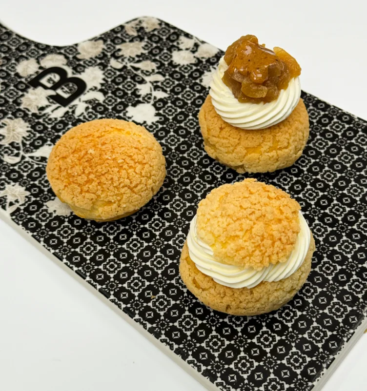 Uma massa incrível com craquelin, recheada com uma ganache montada de chocolate branco, compota de maçã e praliné de avelã, uma combinação que faz qualquer um se apaixonar por esse doce.